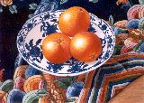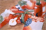 For over ten years, Sally Jorgensen painted realistic watercolor still lifes. The images above are a selection of some of this brilliantly colored, richly detailed work. They reflect a wide variety of subject matter, incorporating colorful fruit, vegetables and flora with antiques and art pottery, lace, vintage and woven textiles, and quilts. In 2000, Sally's emphasis shifted to nature scenes in oil. Her original watercolors are no longer available. Some of the images may be available as  matted photographic reproductions or inkjet prints.  To email her with any questions you may have regarding reproductions of her artwork click on the "Contact the Artist" link below.